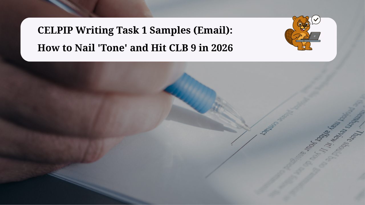 Stop losing CLB 9 because of tone mismatch. See real CELPIP Writing Task 1 email samples that score above CLB 9—and learn how to avoid robotic templates in 2026.